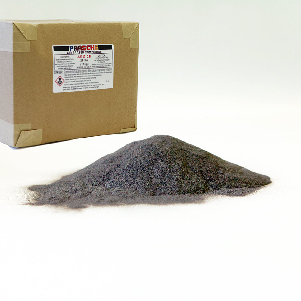 25 Lbs of 240 Grit Aluminum Oxide fast cutting compound. Can be used in either our AEC, ER-1S, AEC-K or AECR air erasers.