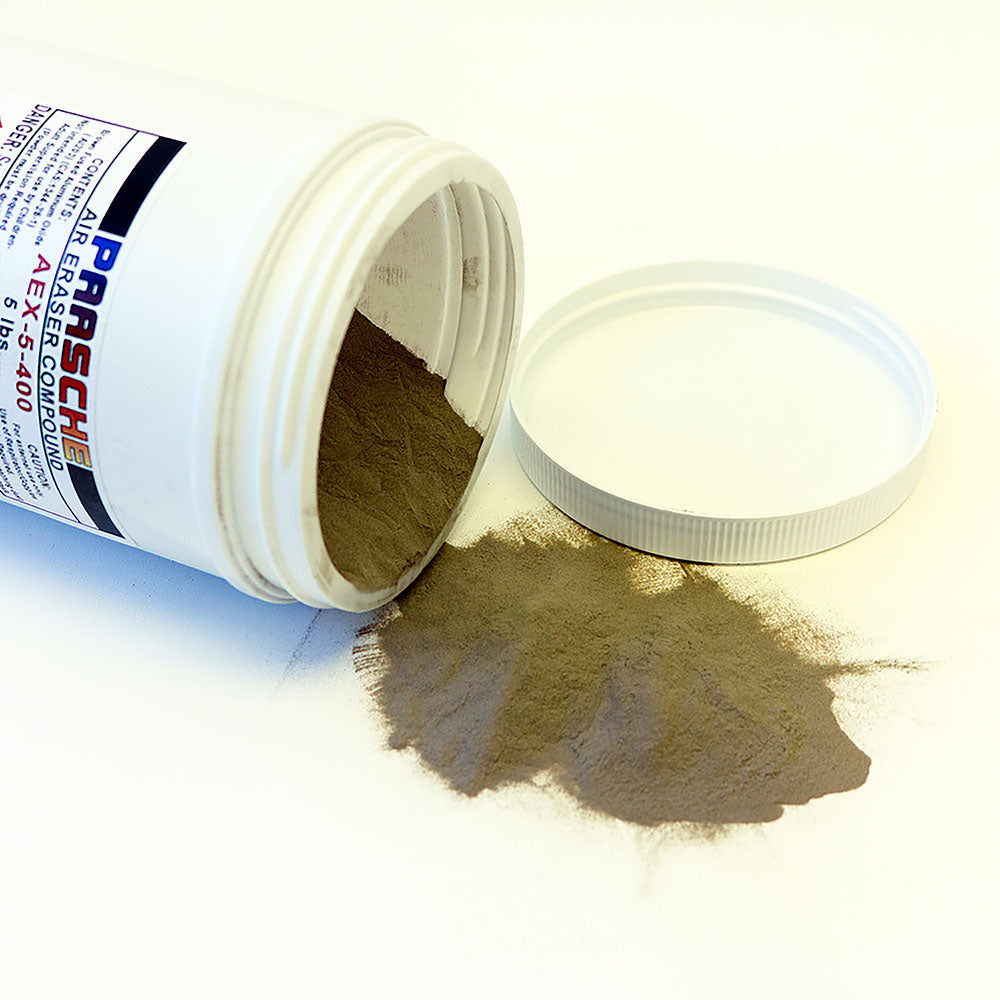 5 Lbs of 400 Grit Aluminum Oxide fast cutting compound. Can be used in either our AEC, ER-1S, AEC-K or AECR air erasers.