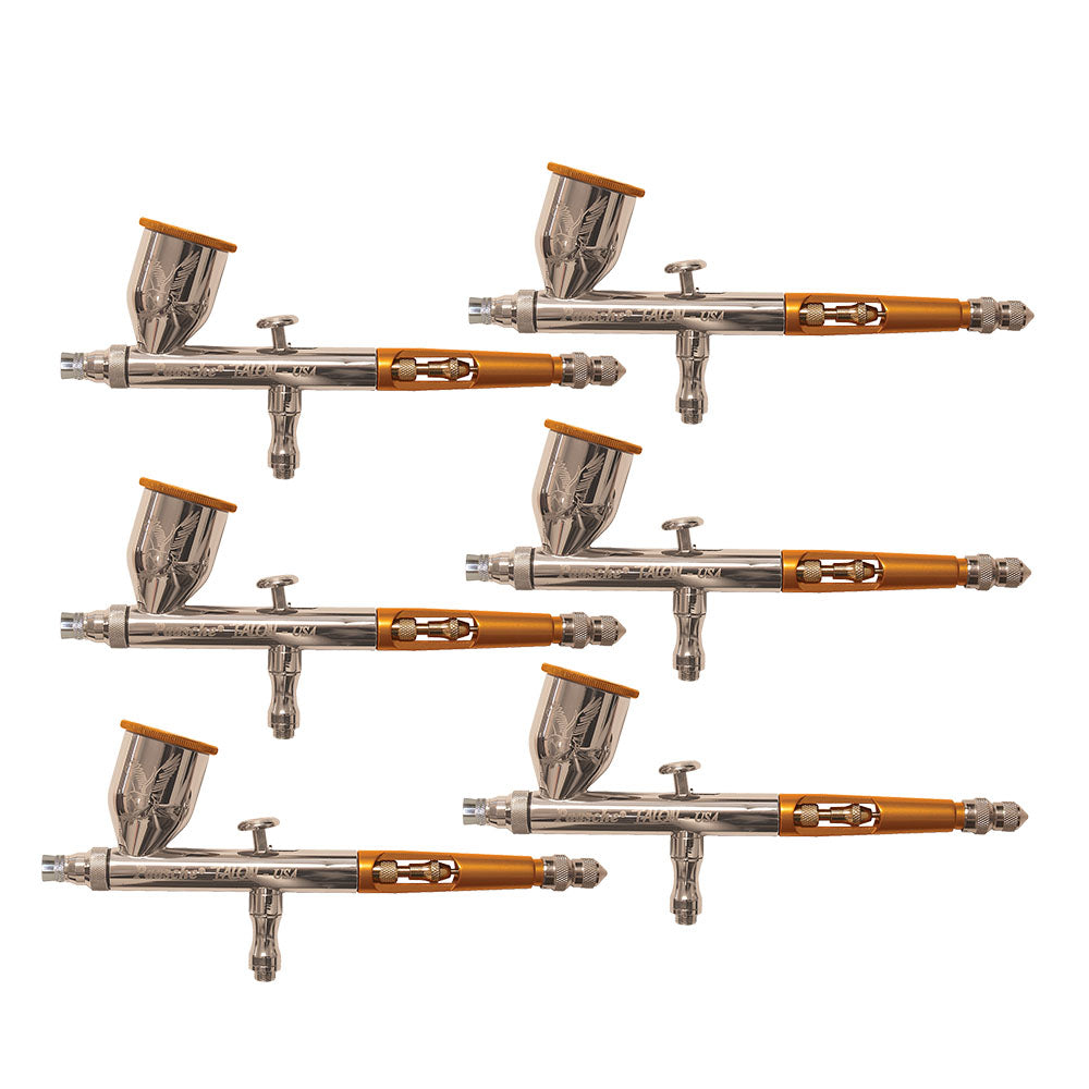 (6) TG#2 Double Action Airbrushes, .4 oz cup, Cup cover and manual.